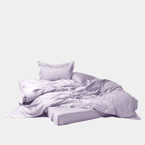 Простыня из шелковистого сатина нежного лавандового цвета.
